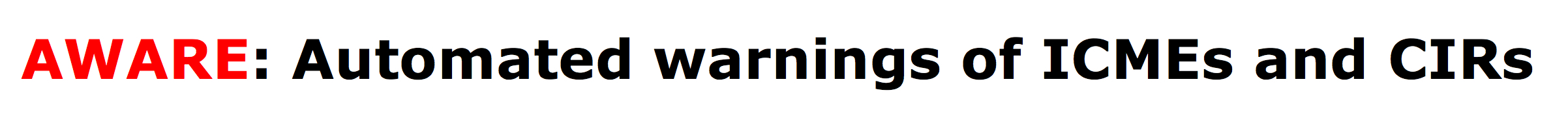 The service for Automated WARnings of Earth arrivals (AWARE) detects and displays arrival of solar wind disturbances with a potential to create geomagnetic storms. The arrivals are displayed on top of the near real-time solar wind time series observed by the currently near real-time operational spacecraft in L1, and kindly made available by NASA and NOAA. The top curve shows the interplanetary magnetic field, with the total intensity in black and the Bz-component in brown. The middle curve shows the solar wind speed v. These parameters are well known to be the most important for the geo-effectiveness of the storms.